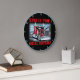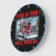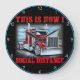 This humourous wall clock makes a timely and witty statement about a truck driver's lifestyle. Against a black background with a striking blue rim, it features a red semi-truck on a road, with clouds and trees in the background. The bold red text reads: "THIS IS HOW I SOCIAL DISTANCE", highlighting the inherent isolation of long-haul trucking. This is a perfect piece for a truck driver who appreciates a good laugh and recognises the unique aspects of their profession. You can customise the colour of the frame to any colour you desire by going into the design tool.