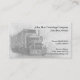 A business card design showing a black and white illustration of a 18 wheeler semi truck and trailer . This can be used for a trucking company and transportation services. Also can be used by independent truckers who offer their services.