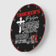 This deeply spiritual wall clock features a profound "Trucker's Prayer" for safety and guidance on the road. Against a black background with a red rim, it prominently displays a white cross and text of the full prayer, concluding with "KEEP ME SAFE GET ME HOME". Two red semi-trucks are at the bottom. It's a thoughtful and spiritual gift for any truck driver or their loved ones. The design tool can also be used to add custom text if you want your name or company on this clock. You can customise the colour of the frame to any colour you desire by going into the design tool.