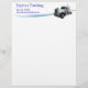 Photo of a white semi truck on a modern looking background. This letterhead comes in several versions with different colour backgrounds. This can also be used for trucking, transportation, delivery, moving and logistics companies. Text is completely customisable.