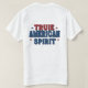 The t-shirt design features the phrase "True American Spirit" in bold, graphic letters with a multicolored colour scheme. The colours used are red, white, and blue, which are the colours of the American flag. The design is simple and eye-catching, and it is sure to make a statement.