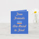This card has a blue background ,light coloured text >True friends are hard to find . inside We will miss you so much.
