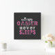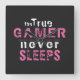True Gamer Never Sleeps Pink Typography Gamer Sq Square Wall Clock