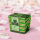 Vintage Irish Postcard for St Patrick's Day. Design on take-out favour box with green and yellow ribbons all around the cube box.