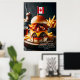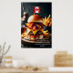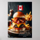 Embrace the flavours of the True North with this indulgent Canadian Maple Bacon Burger. A juicy beef patty is topped with crispy maple-glazed bacon, sharp cheddar cheese, and a delicate drizzle of maple mayo, all nestled inside a toasted potato bun. A small Canadian flag adds a patriotic touch, while a side of poutine completes this Canadian culinary delight.