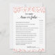 Purchase this game and enjoy high quality True or False card card for your event! Baby Shower Activities! Rose Gold confetti design. ANSWERS: 1-TRUE, 2-TRUE, 3-TRUE, 4-TRUE, 5-FALSE (red), 6-FALSE (may), 7-TRUE, 8-FALSE (cherry), 9-TRUE, 10-TRUE, 11-FALSE, 12-FALSE (8000)