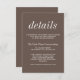 A wonderful insert to place any details not included on the wedding invitation or rsvp card - such as the reception information or wedding website. Perfectly coordinates with the True Simplicity 2 collection. This is a mix or match collection. Please contact me if you would like help with customising the text portion of this details insert.