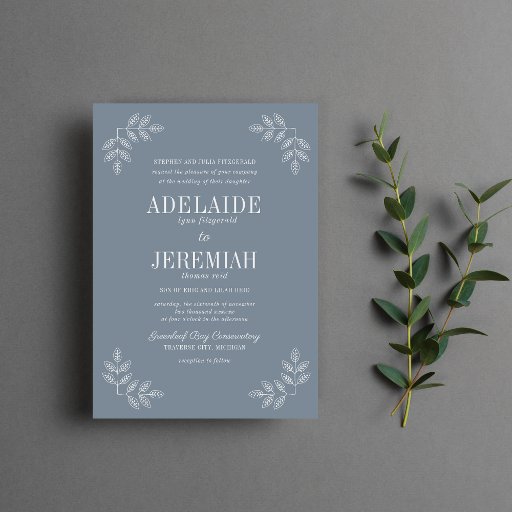 This gorgeously simple yet elegant wedding invitation features a frame of drawn leaves bordering the invitation text. Please contact me if you would like help with customising the text portion.