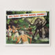 20” x 16” jigsaw puzzle with a vintage image of an ad run by Cannon Mills for their Cannon towels. This ad shows a group of handsome, young sailors wearing white shorts while bathing in a river believed to be in India. There are two turbaned Indian men with spears and two elephants; one lying in the water and the other spraying water on one of the sailors. The text reads, “Hey, Turn off the Water Jumbo!” Cannon Towels ran these ads in WWII which were based on actual letters they received from the boys in the field about their products. The art was done by prolific artist James Bingham which shows off his excellent skills. The art is as such to tantalise the ad's audience, women, so what's better then a bunch of scantily clad soldiers, sailors, marines and airmen for all those lonely ladies back home? See the entire Patriotic 40s Puzzle collection in the ACTIVITIES | Puzzles section.