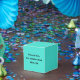 Square Shaped Party Favour Box with customisable template Thank You For Celebrating With Us typography printed with True Turquoise Blue Green Southwestern Solid Colour background illustration and select products collection by TheFabricSeal print on demand shop at Zazzle.com #ZazzleMade https://www.zazzle.com/store/thefabricseal