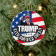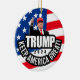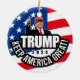 Trump 2024, Keep America Great Christmas Tree Ornament. Bold red white and blue American flag in the background with a picture of President Trump giving the thumbs up. Trump 2024 in block lettering. Support President Donald Trump's 2024 re-election campaign with stylish and strong bold USA theme for twenty twenty.
