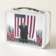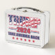 This is a standard metal lunchbox that appears to work just fine. We designed this box ourselves with an uploaded photo and custom text on the front and back. It looks absolutely beautiful except the front of the lunchbox is not centered like it shows in the photo. The print borders don't align with the inset flat part of the box where the preview photo online showed it perfectly centered in there. The back looks nice and centered though.