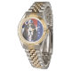 The watch is very nice, the picture is great and the watch looks like quality. The only problem I am having with it is that it is a little too large, and I also can't figure out how to open the clasp. No directions came with it. Very good. The printing is perfect and the watch keeps good time.