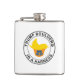 The flask itself is fine. It’s a cheap flask, obviously bought in bulk, however am prepared to overlook that. Given that it is a personalized item, I would have liked to have seen gift boxing instead of the generic packaging. Terrible printing, and/or quality. It’s a cheap, tacky vinyl. It is not cut straight and is also applied in a way that it is overhanging the bottom, causing the glue to catch on items and it will eventually roll and tear, damaging the wrap.