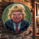 A round dartboard featuring a caricature of Donald Trump. The image is a humourous take on politics, suitable for adults and those who enjoy a good laugh.
