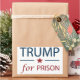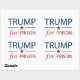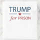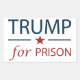 This Trump For Prison sticker has a design that is fashioned after a political campaign slogan banner.