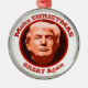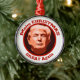 Here's a funny Christmas ornament that makes a nice keepsake for a historical year, too! It has an artistic portrait of Donald Trump in a circular red frame border. The curved text above and below the image says "Make CHRISTMAS GREAT again". You KNOW you know someone who wants this!