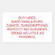 BUY USED. Shop Mum & Pops. Cancel Subscriptions. BOYCOTT BIG BUSINESS. Spend as little as Possible. Conscious-Social-Commentary Splash-Art sticker-design by Jeff Hankamer at Artjunkhaus
