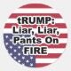 tRUMP: Liar, Liar, Pants on Fire Classic Round Sticker