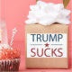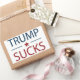 This Trump Sucks Anti Trump sticker is comprised of a colourful, yet simple text design that is fashioned after a campaign slogan banner design.