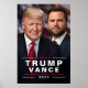 Donald Trump and JD Vance with patriotic American flag background. 2024 presidential election rally gear for Republican supporters, campaign and fundraising events.