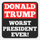 Spread the word with the official "TRUMP Worst President Ever!" Sticker. Accept no substitutes!