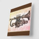 vintage art with painting of a trumpet with floral carving.