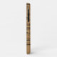 A phone case for the trumpeter or the music lover, it shows a photographic image of a brass trumpet on a light brown background with notes from a musical score printed on it creating a vintage look. A template area is provided in the design for your custom name or text.