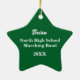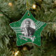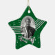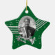Trumpet star holiday photo ornament in green with silver music notes and photo ornament for your favourite musician. Personalise text on back as preferred.