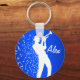 Blue and White Trumpet Player Silhouette Soaring Music Notes Customised Keychain