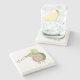 The coasters are gorgeous, a quality feel and heavy weight. They look like a precious archeological find. A rustic stone juxtaposed with a modern floral black and white print. I like the way the print goes slightly imperfect on the cut stone edges giving them a kind-of natural beauty.