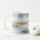 A pair of trumpeter swans swim in a Pacific Northwest salt marsh on a misty day. Beautiful nature scene, perfect for anyone who loves birds, wildlife, nature, and the outdoors.