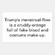Trump's menstrual-flow is a cruddy-orange full of fake blood and costume make-up. Comic Conscious-Social-Commentary Splash-art sticker-design by Jeff Hankamer at Artjunkhaus