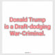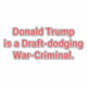 Donald Trump is a Draft-dodging War-Criminal. Conscious-Social-Commentary Splash-Art Vinyl sticker-design by Jeff Hankamer at Artjunkhaus