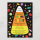 Our Trunk or Treat Halloween Candy Invitation features a colourful, candy-filled background and candy corn centre design. This is the perfect invitation for any Trunk or Treat event!