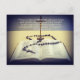 Inspirational message: Proverbs 3:5-6 overlay with bible, cross and rosary.