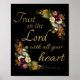 Women’s Christian floral graphic art with popular Bible quote, “Trust in the LORD with all your heart”, Proverbs 3:5. Featuring vibrant flowers and elegant handwriting. Spread inspiration and hope with this feminine faith quote. Available online only.