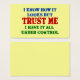 This reads, "I know how it looks but, trust me, I have it all under control," in multicolored lettering and a slightly frazzled font that suggests that it might be anything BUT "all under control."