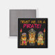 Illustration of a Tiki pirate captain with his crew and a funny quote, Trust me I'm a pirate, funny black magnet.