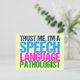 Trust me, I'm a SLP. A cute speech therapist gift for someone who works with children who take speech therapy. Features pretty pastel colours and can be customised with your own text.