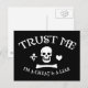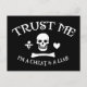 "Trust Me - I'm a cheat & a liar," text in pirate lettering with the Jolly Roger flag emblem of Captain Stede Bonnet. T-shirts, hoodies, cards, gifts.