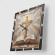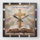 This serene wall clock beautifully illustrates a wooden cross standing above an open Bible, set against a backdrop of soft, radiant, mosaic-like light. The comforting scripture, "Trust in the Lord always. Isaiah 26:4," is prominently displayed. With its textured, painterly style, this timepiece serves as a constant, gentle reminder of unwavering faith, divine guidance, and the enduring strength found in trusting God through all times.