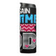 This motivational design encourages "TRY AGAIN THIS TIME With GOD." "TRY AGAIN" is in a distressed white, and "THIS TIME" is a bold blue. "With" flows in a script over a pink wavy banner, and "GOD" is prominent with a white plaid pattern and red hearts, emphasizing divine partnership in new attempts.