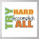 Inspirational T-shirts, buttons, bags, mugs, cards, stickers, water bottles, hoodies, tank tops, mousepads, and much more with text that reads "Try Hard Accomplish All", great for teachers, educational professionals, coaches, anyone trying to achieve their goals!