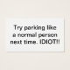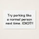 Tired of people parking like idiots? Leave this on the car of the next person that takes up two parking spots, parks too close to you or parks in a no parking zone.