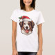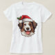 Tshirt with a festive Christmas brown and white Border Collie wearing a Santa hat! (Brown nose version - black nose also available in this store).