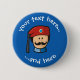 Head of Greek Evzone (tsolias) cartoon, wearing red fez. Custom background colour. Two custom text fields on circle.