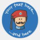 Head of Greek Evzone (tsolias) cartoon, wearing red fez. Custom background colour. Two custom text fields on circle.