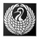 A stylised white crane on a black background. The Japanese word for crane is tsuru which is a symbol of longevity and good fortune for the Japanese