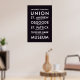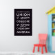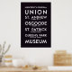 Toronto Transit Commission rollsign style poster. Features stops along the Yonge-University-Spadina subway line. List of stations on poster: "University-Spadina" signage, Union, St. Andrew, Osgoode, St. Patrick, Queen's Park, Museum.